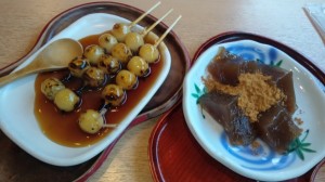 みたらし団子とついでにわらび餅です(⌒囗⌒)